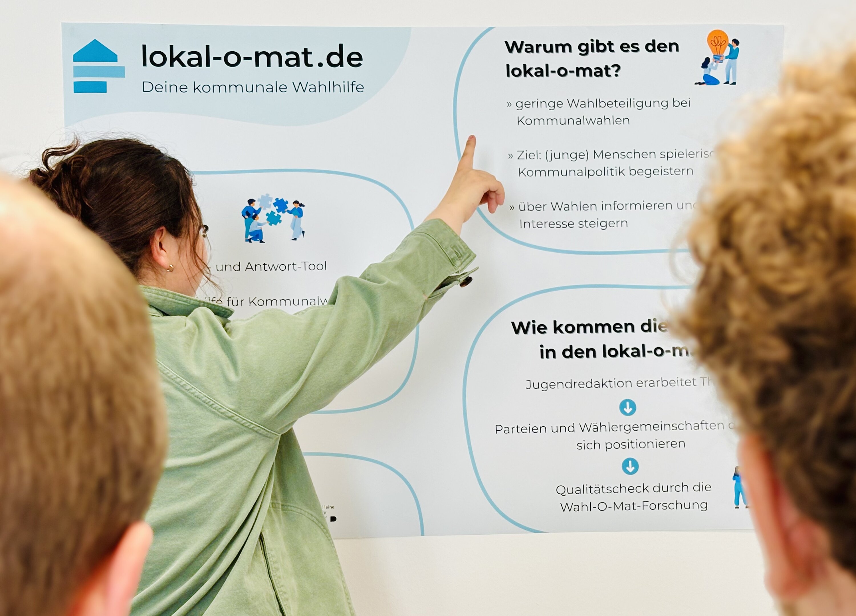 In den Entstehungsprozess lässt das Düsseldorfer Forschungsteam, das auch die wissenschaftliche Begleitung des Wahl-O-Mat verantwortet, nicht nur die eigenen Erfahrungen einfließen, sondern beteiligt auch die lokale Bevölkerung. Die Thesen für die vier Versionen des lokal-o-mat werden in einem Workshop im Dezember gemeinsam mit jungen Erwachsenen aus den teilnehmenden Städten entwickelt. „Gerade junge Menschen nehmen immer seltener an Kommunalwahlen teil, wodurch ihre Perspektive auf das Leben in ihrer Stadt oft nicht vertreten wird“, erklärt Jonas Bongartz, Projektkoordinator des lokal-o-mat Hessen. „Deshalb möchten wir schon im Entstehungsprozess des Tools junge Menschen für lokale Beteiligungsmöglichkeiten sensibilisieren.“ Die finale Themenauswahl wird jedoch nicht nur die Interessen junger Altersgruppen abdecken, sondern die aller Wahlberechtigten aufgreifen.