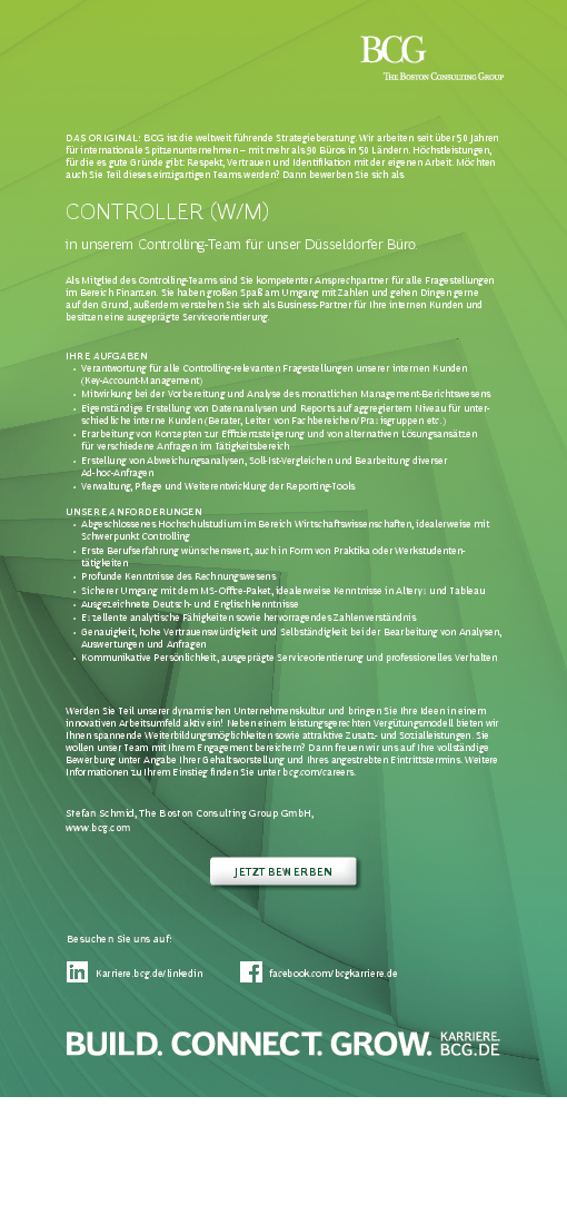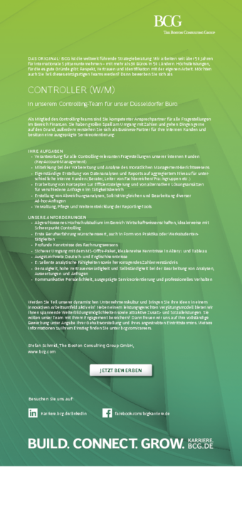 Als Mitglied des Controlling-Teams sind Sie kompetenter Ansprechpartner für alle Fragestellungen