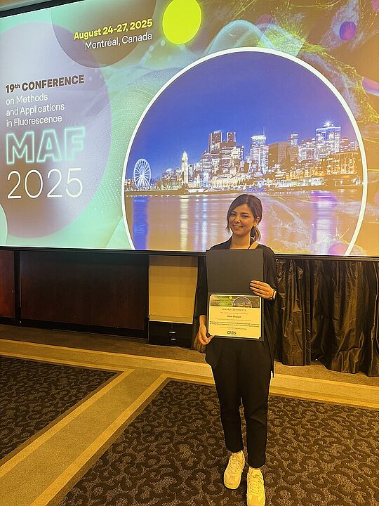 Mina Chalani gewinnt auf der 19th Conference on Methods and Applications in Fluorescence (MAF) 2025 in Montréal, Kanada, einen Posterpreis für die beste Posterpräsentation.