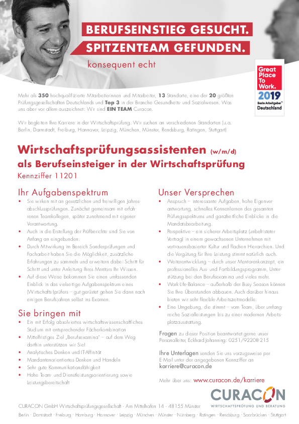 Wirtschaftsprüfungsassistenten (m/w/d) als Berufseinsteiger in der Wirtschaftsprüfung