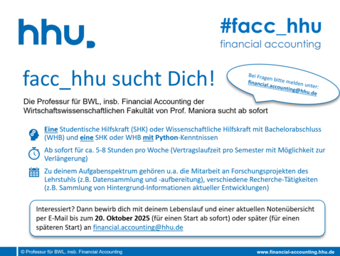 Der Lehrstuhl für BWL, insb. Financial Accounting der Heinrich-Heine-Universität Düsseldorf sucht ab sofort zur Verstärkung des Teams eine…
